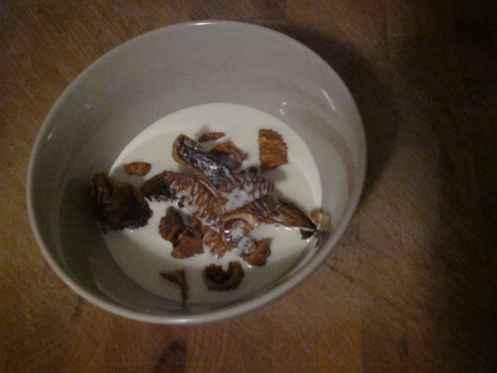 Having the dried figs in cream is a substitute for the absentee fresh ones that I grow on the - thus far - five trees. They give tons of figs, and I'm a big dumb weakling when it comes to giving them away. I like doing that - that is, to people who actually like them. Still, I keep a ton in the freezer, but they don't last long. They all get consumed by about - what is it - the end of October? But at some point in winter, their memory begins to haunt me, and I resort to store-bought dried figs.